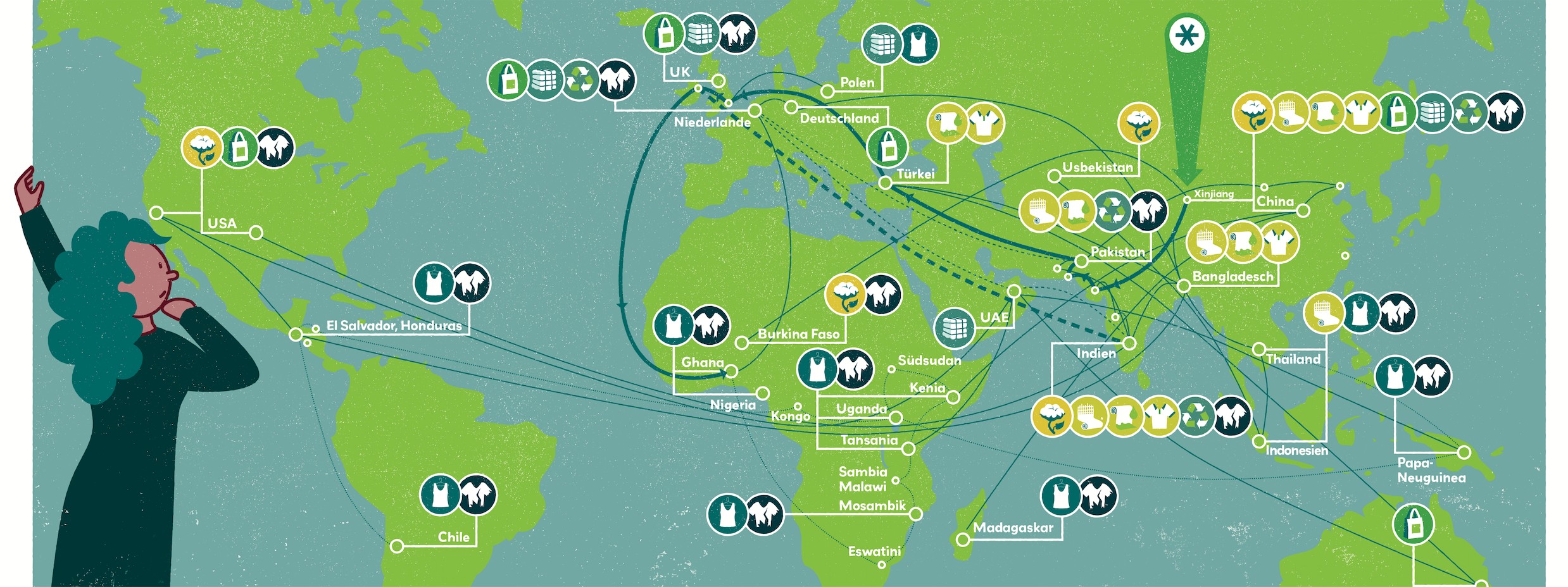 Ein T-Shirt geht auf Reisen. Globaler Secondhandhandel